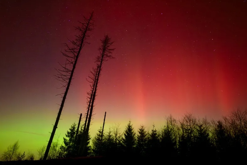 تماشاگران آسمان در سراسر جهان با شفق‌های قطبی خیره‌کننده‌ای روبرو شدند که بسیار فراتر از محدوده قطبی معمول خود بودند و آسمانِ عرض‌های جغرافیایی میانی را در طول یک طوفان ژئومغناطیسی شدید در کلاس G4 روشن کرد.