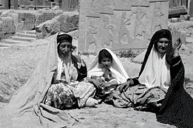 عکسی تاریخی از سه زن عشایر در تختجمشید، پیوند عمیق ایرانیان با ریشههای فرهنگی و تاریخی خود را به تصویر میکشد.