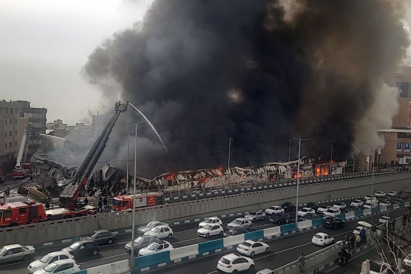 ستون دود ناشی از آتش سوزی گسترده بازار جنت در غرب پایتخت، در آسمان تهران دیده می‌شود.