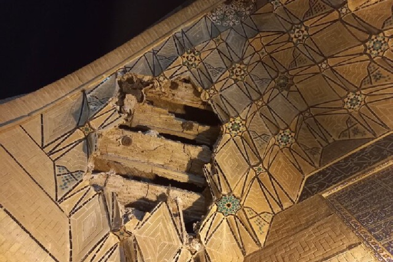 بخشی از چَفدآویزهای بنای تاریخی پشت آرامگاه خاندان قوامالملک شیرازی بر اثر گذشت زمان و سهلانگاری در مرمت فرو ریخت.