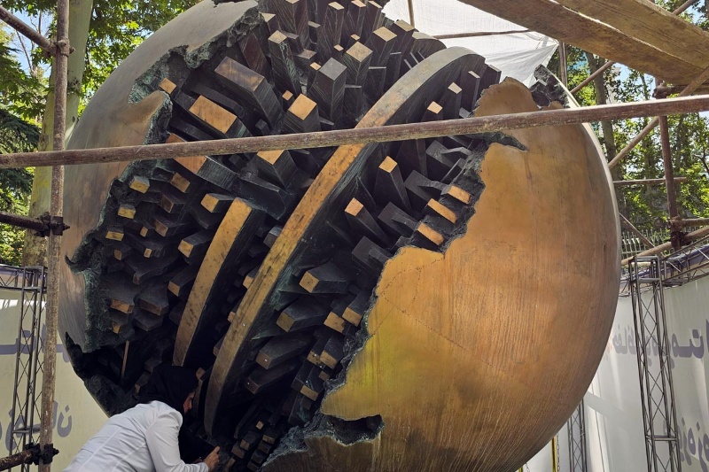 بزرگترین گوی برنزی پومودورو اکنون در موزه زمان مراحل مرمت، پاکسازی و حفاظت را میگذراند.