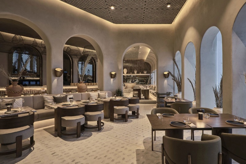 عکاس: نامشخص / Love That Designاقیانوس، الهام‌بخش اصلی طراحی داخلی «میدار» است؛ از الگوهایی که فلس ماهی را روی سنگ‌های مرمر تداعی می‌کنند تا تورهای ماهیگیری که سقف را زینت داده‌اند. جزئیات برنجی قدیمی، دیوارهایی با بافت ماسه‌ای و سفال‌های دست‌ساز هنرمندان محلی، فضایی روشن و صمیمی ایجاد کرده‌اند. همچنین، با الهام از ریشه‌های بیابانی و منظر شهری کویت، از رنگ‌های خاکی و بلوک‌های سیمانی سنتی که جزئی کلیدی از میراث معماری محلی هستند، در دکوراسیون استفاده شده است. همه این عناصر در کنار هم، تجربه‌ای فراتر از صرف وعده‌ای غذا را رقم می‌زند و سفری به قلب تاریخ و فرهنگ کویت را برای مهمانان تدارک می‌بیند.