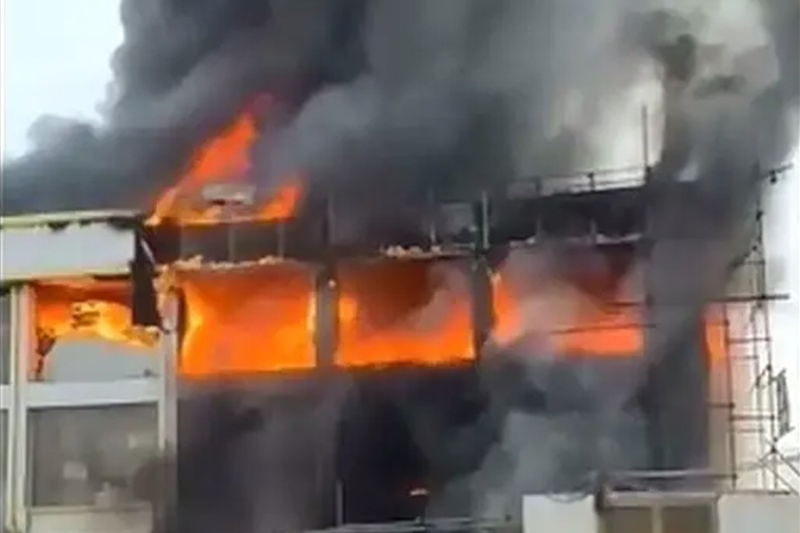 شعله‌های آتش در پاساژ معروف قشم؛ آتش‌سوزی گسترده بازار اطلس