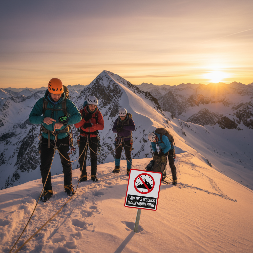 قانون ساعت ۲ یا Rule of 2 PM یک قاعده طلایی در کوهنوردی حرفهای است. طبق این قانون، شما باید قبل از ساعت ۲ بعدازظهر به نقطه بازگشت یا مقصد نهایی صعود خود برسید. اگر در آن زمان هنوز در مسیر صعود هستید، بهتر است ادامه ندهید و فوراً به سمت پایین بازگردید.